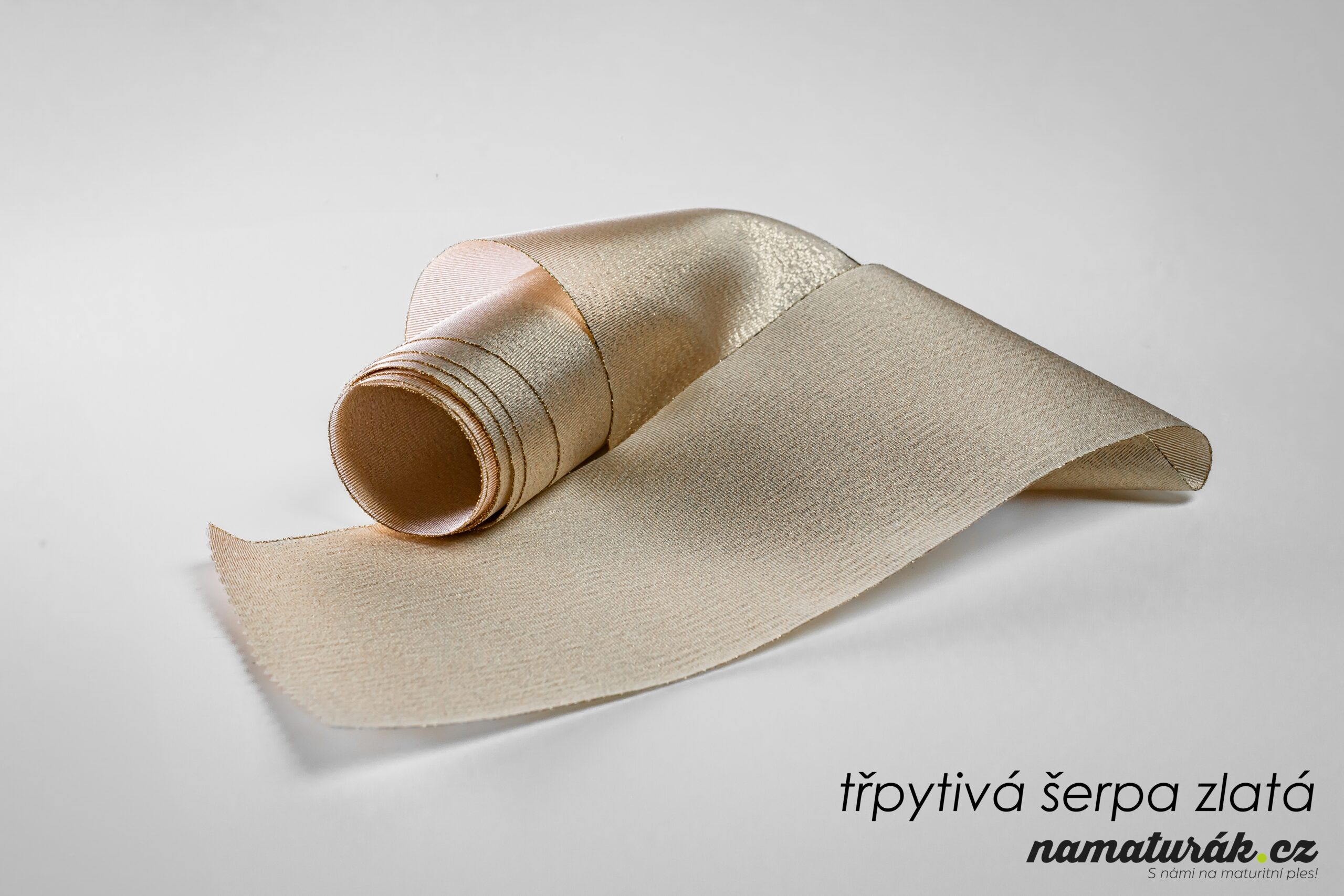 Luxusní třpytivé šerpy jsou protkány třpytivou zlatou nebo stříbrnou nití a na plese jsou vždy středem pozornosti. Třpytivé šerpy 110 mm široké dodáváme standardně zastřižené entlovacími nůžkami zabraňující třepení šerpy. Při objednávce nad 20 ks šerp dostanete 1 ks absolventské šerpy pro třídního učitele zdarma. Tuto šerpu je nutné však objednat (informace níže). Tyto šerpy jsou s potiskem Absolvent 2026.